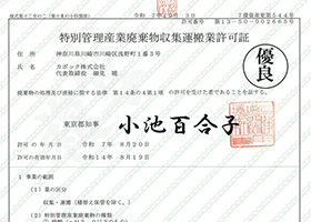 | 産業廃棄物処分業 | 川崎市 第05720002665号 |